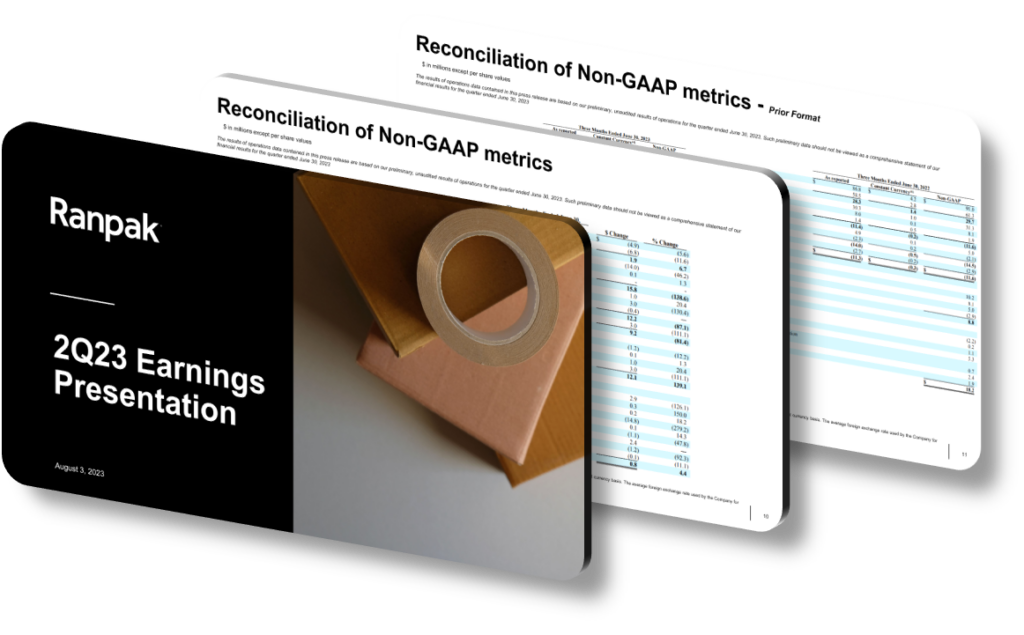 Overall, Ranpak’s 2Q23 earnings presentation was a testament to the company’s ability to navigate economic challenges with strategic agility and resilience. Through its thoughtful design, structured approach, engaging visuals, and positive messaging, the presentation not only addressed immediate performance metrics but also laid out a clear vision for future growth and innovation. Stakeholders were left with a strong sense of confidence in Ranpak’s potential to thrive in the dynamic industrial landscape.