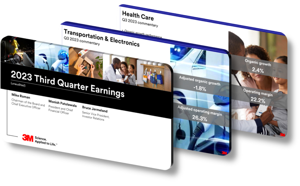 In conclusion, 3M’s 2023 Third Quarter Earnings presentation was a well-crafted communication tool that effectively conveyed the company’s strategic direction and operational achievements. Through its structured design, engaging visuals, and clear messaging, it successfully communicated 3M’s commitment to innovation, risk reduction, and sustainable growth. This presentation not only informed stakeholders but also reinforced confidence in 3M’s ability to navigate a dynamic market landscape and achieve continued success.