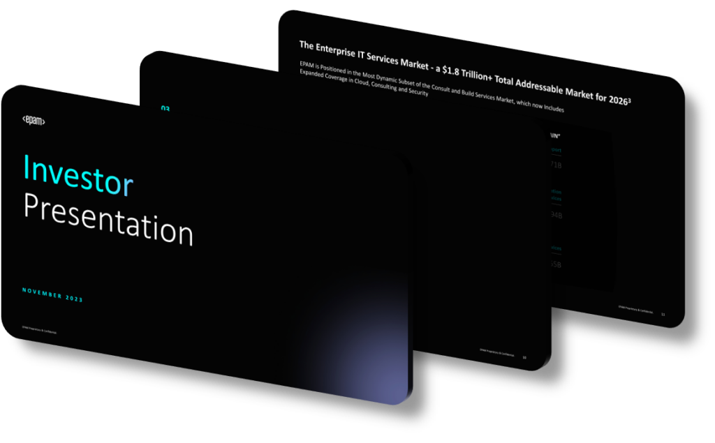 At the heart of EPAM’s presentations is the delivery of core content that showcases the company’s strengths and future aspirations. The presentations emphasize EPAM’s nearly three decades of expertise, its multidisciplinary teams, and its robust AI capabilities. By highlighting the company’s strategic focus on sustainable growth, profitability, and continuous innovation, the presentations assure stakeholders of EPAM’s long-term value and market positioning.