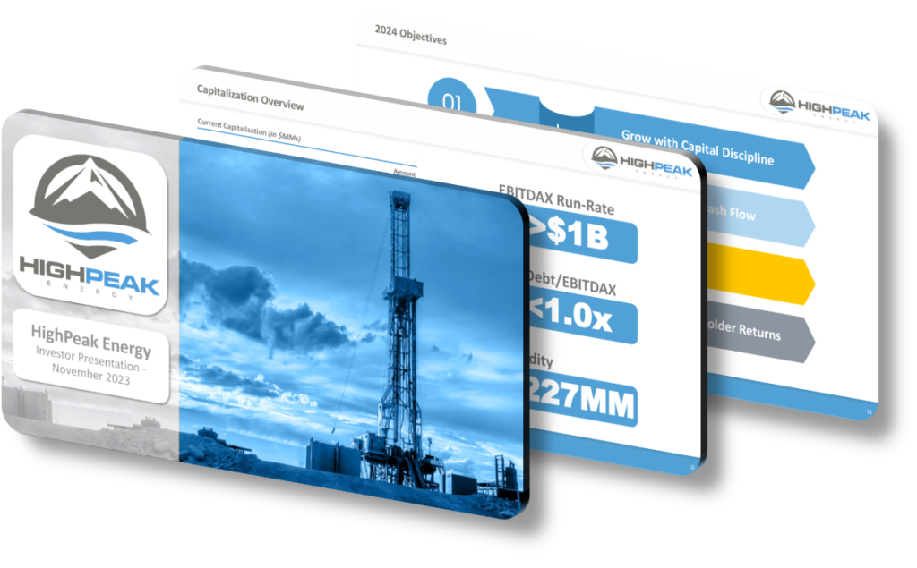 In conclusion, HighPeak Energy’s November 2023 investor presentation is a compelling demonstration of the company’s strategic focus, operational excellence, and commitment to sustainable growth. The thoughtful design, clear messaging, and detailed content effectively communicate HighPeak’s achievements and future plans, positioning the company as a resilient and forward-thinking leader in the energy sector.