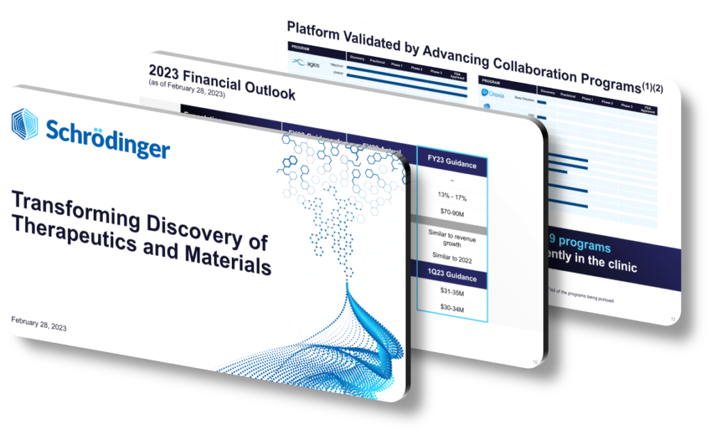In conclusion, Schrödinger’s presentation not only detailed its robust performance in Q2 2022 but also effectively communicated its strategic vision for sustained growth and value creation. Through a well-structured presentation, engaging visuals, and a clear, positive message, Schrödinger highlighted its innovative capabilities and strategic initiatives, setting the stage for continued success and industry leadership.