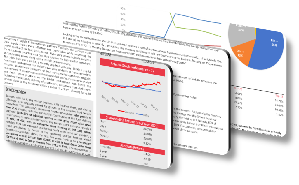 Visual elements play a vital role in reinforcing Zomato’s message. Infographics and charts are used strategically to illustrate the company’s impressive year-over-year growth in revenue and operational profitability. These visuals not only make data more digestible but also underscore Zomato’s strong market position and financial health. Additionally, vibrant images of the Zomato interface and delivery process provide a glimpse into the user experience, highlighting the platform’s ease of use and efficiency.