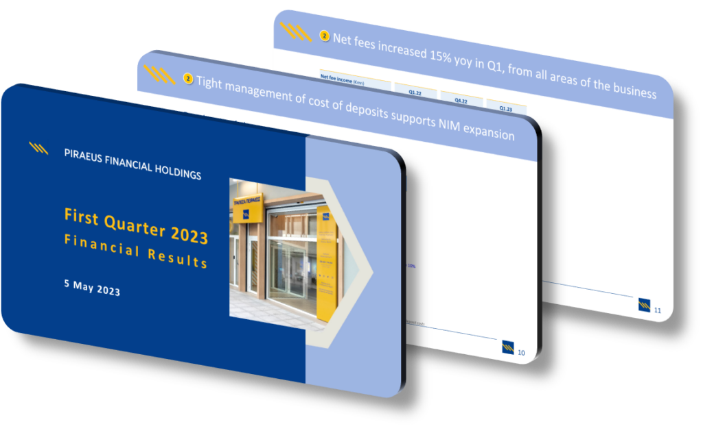 Overall, Piraeus Bank’s first-quarter 2023 financial results presentation effectively communicated the bank’s achievements and strategic initiatives. The use of structured content, impactful visuals, and clear messaging ensured that the audience understood the bank’s current performance and future potential. With a strong market position, commitment to sustainability, and focus on innovation, Piraeus Bank is well-positioned for continued growth and value creation.