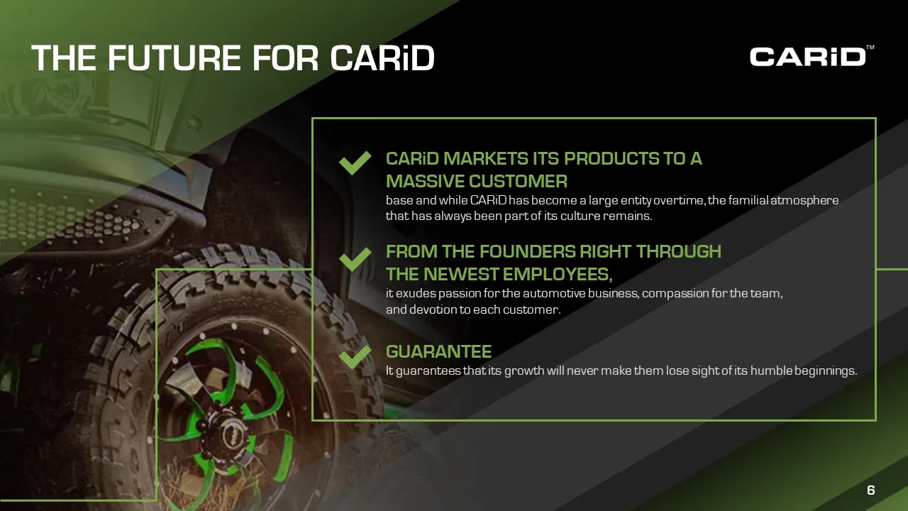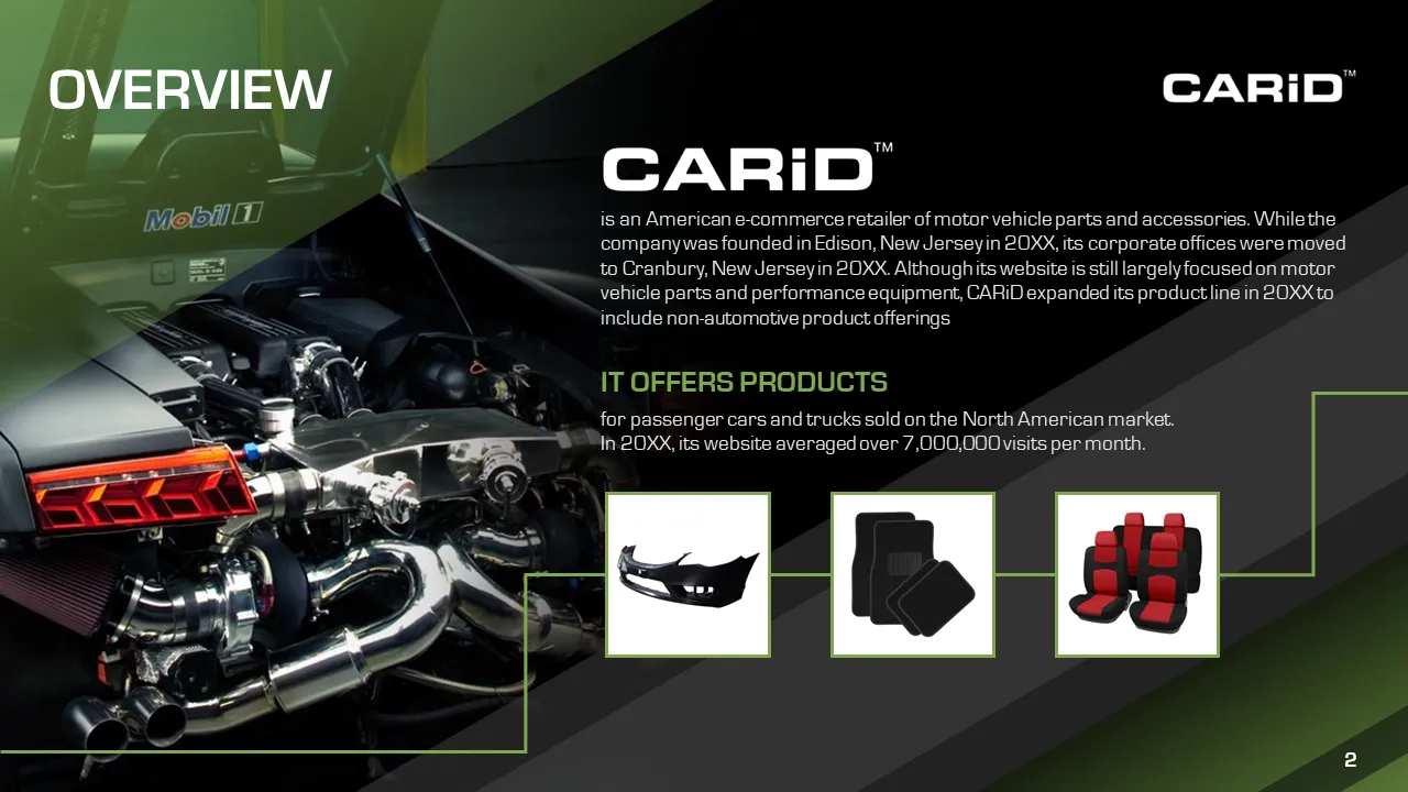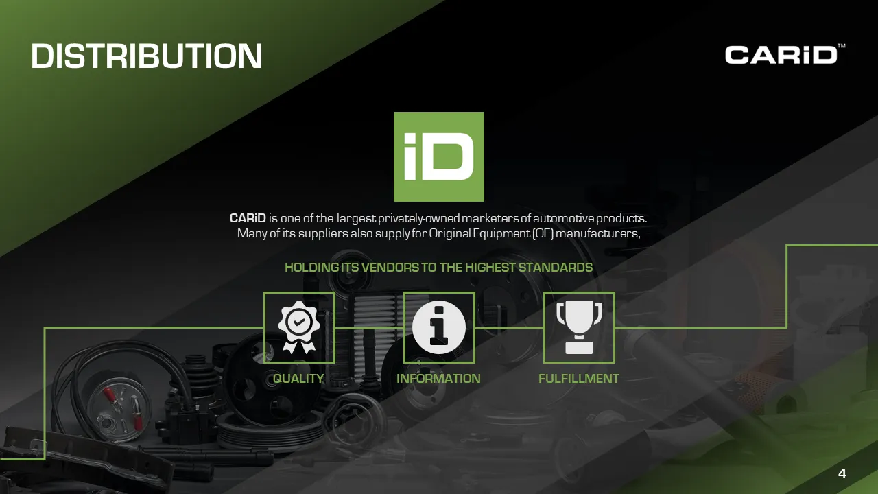 CarID is a leading automotive technology company specializing in providing advanced vehicle identification and data solutions to enhance the efficiency of car sales, maintenance, and ownership experiences. For CarID’s presentation project, we developed an engaging deck that highlighted their innovative AI-driven VIN decoding platform, showcasing its capabilities in streamlining inventory management for dealerships and improving customer satisfaction through accurate vehicle insights.