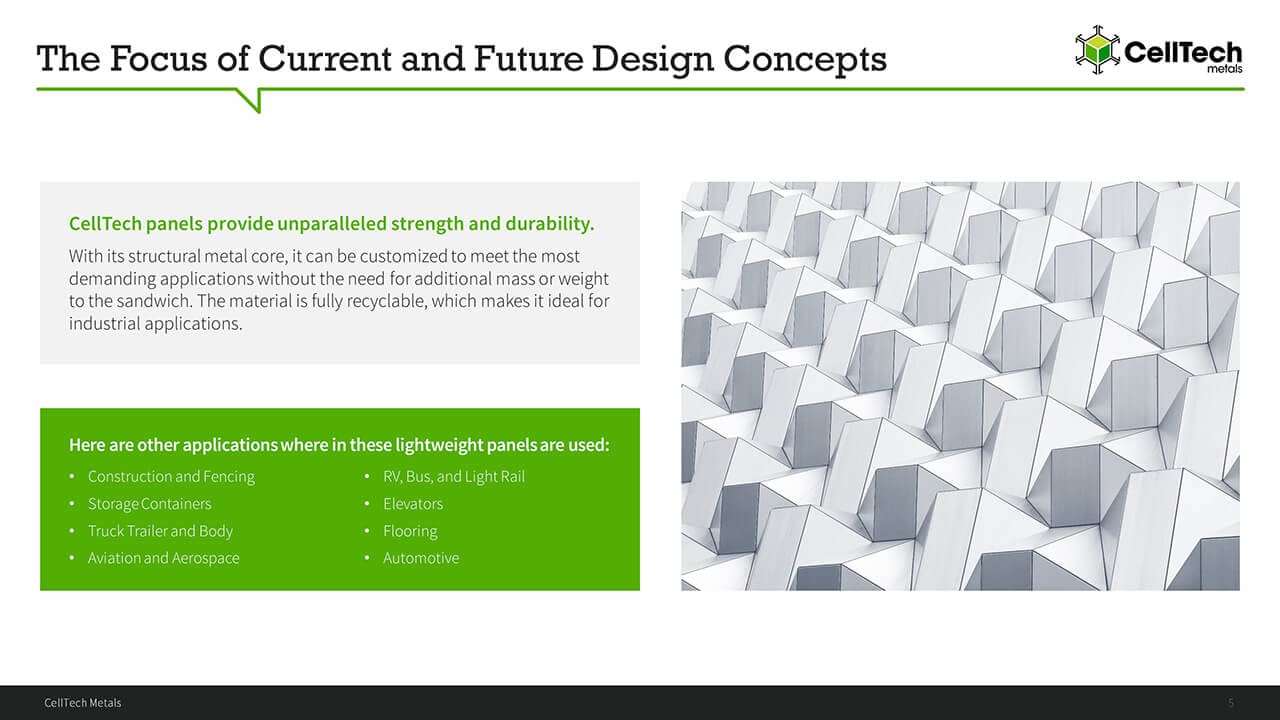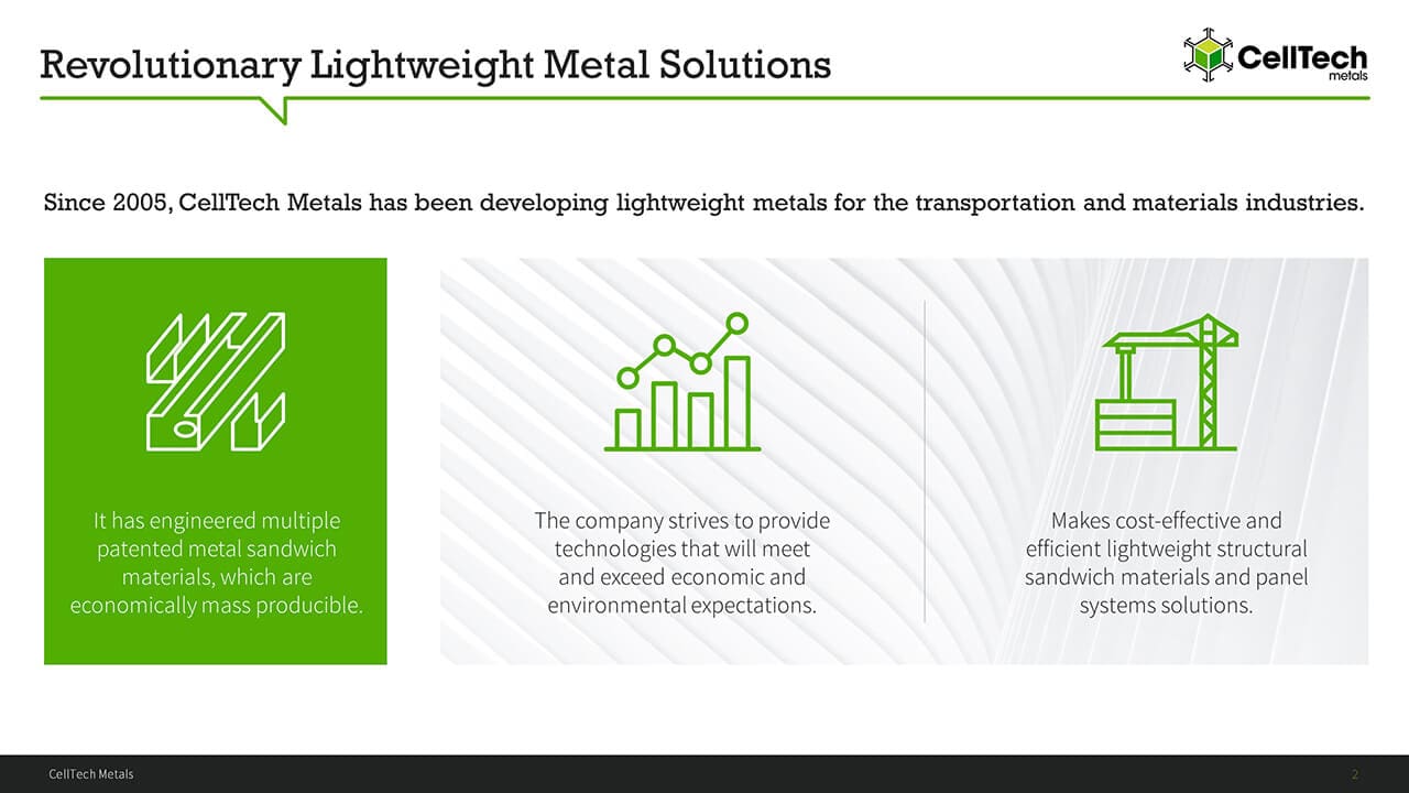 Since its establishment in 2005, CellTech Metals has been engineering multiple patented metal sandwich materials. It produces cost-effective and efficient lightweight solutions through its partnership with precision tooling designers and industry experts in adhesives.