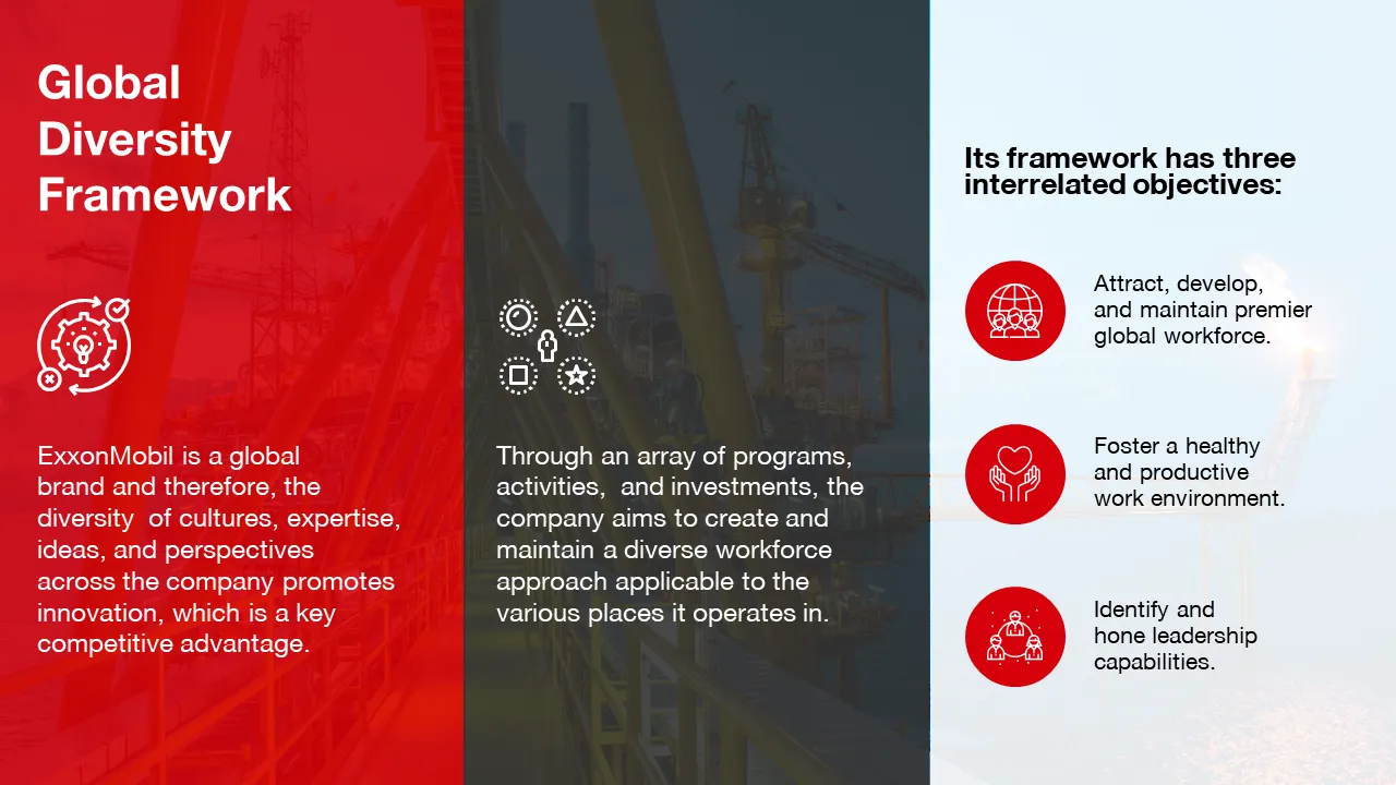 ExxonMobil is a leading global oil and gas corporation dedicated to energy production, exploration, and refinement. For ExxonMobil’s presentation project, we developed an in-depth analysis of their renewable energy initiatives and future sustainability strategies.