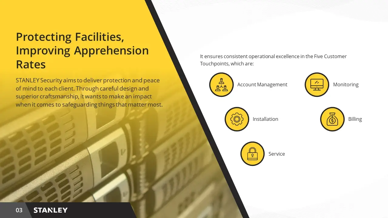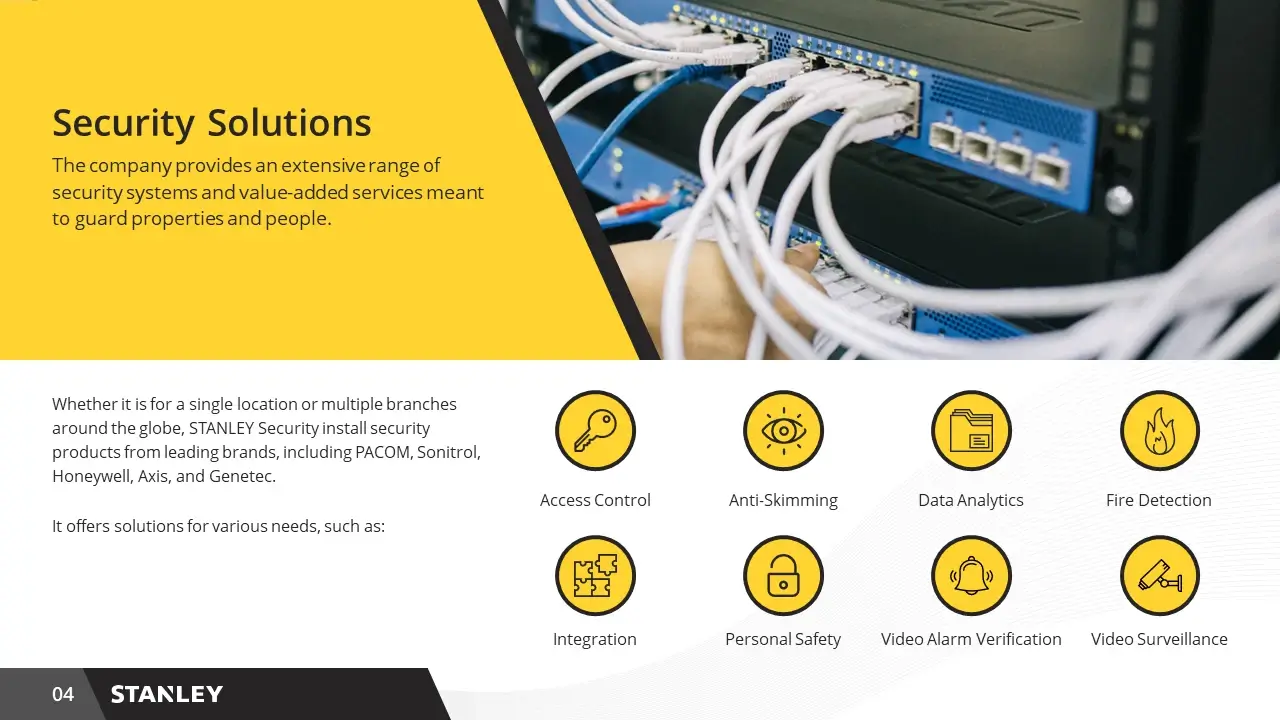 Stanley Security is a leading provider of integrated security solutions, offering advanced products and services to protect businesses worldwide. For their presentation project, we developed an in-depth analysis highlighting emerging trends in smart security technologies and proposed innovative strategies for enhancing system integration and user experience.